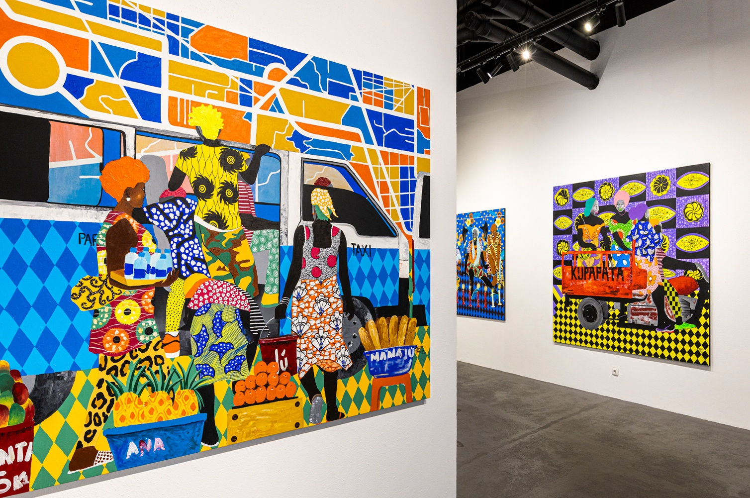 Through a unique aesthetic construction, marked by the exacerbated use of color, the reinvention of traditional African fabric patterns and the deconstruction of stereotypes long mediated in the field of painting, Osvaldo Ferreira shows in this exhibition the invisible aspects of a social history woven into the daily life of the city of Luanda.
