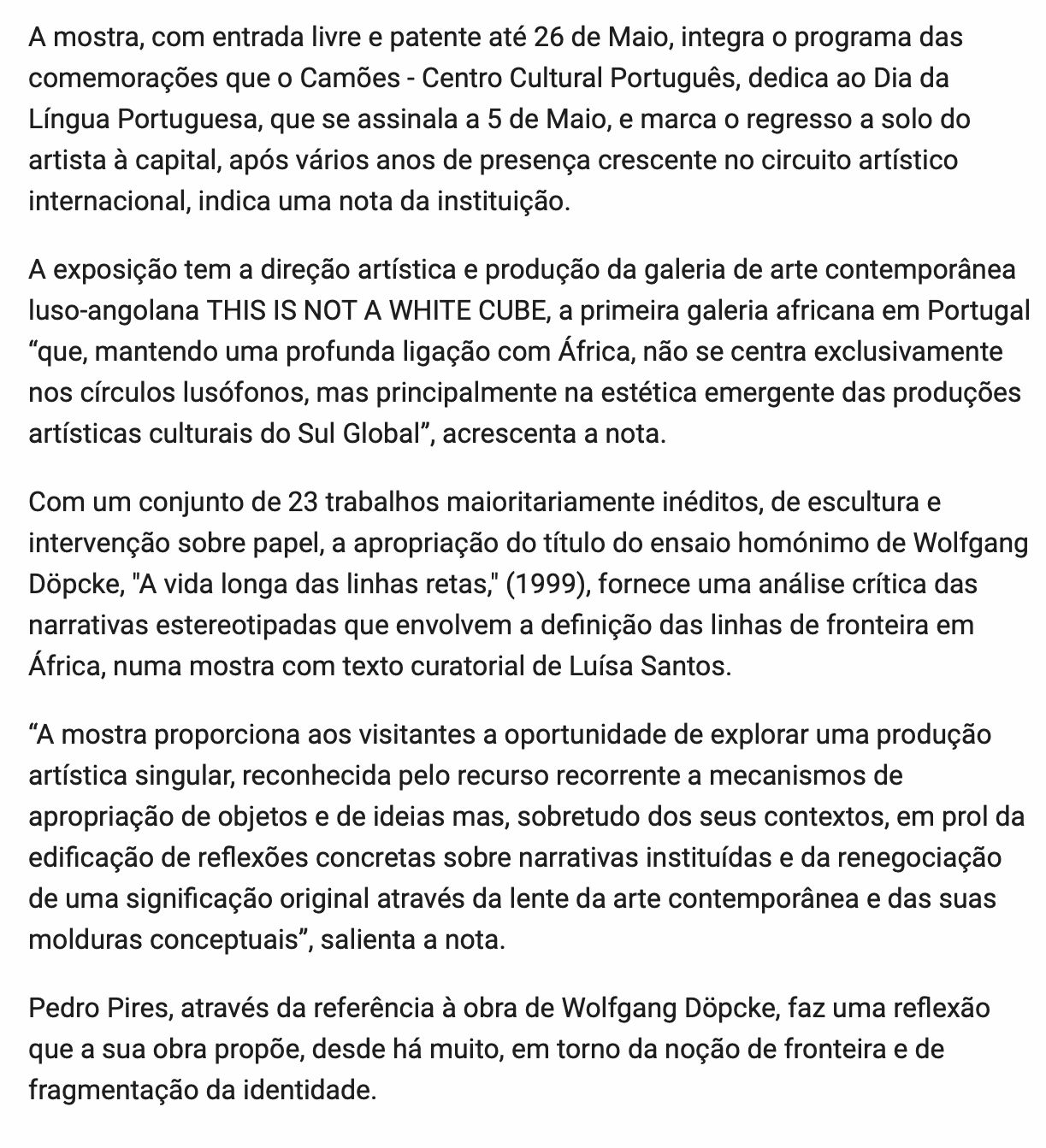 Luanda hosts an exhibition by Pedro Pires as part of the Portuguese Language Day