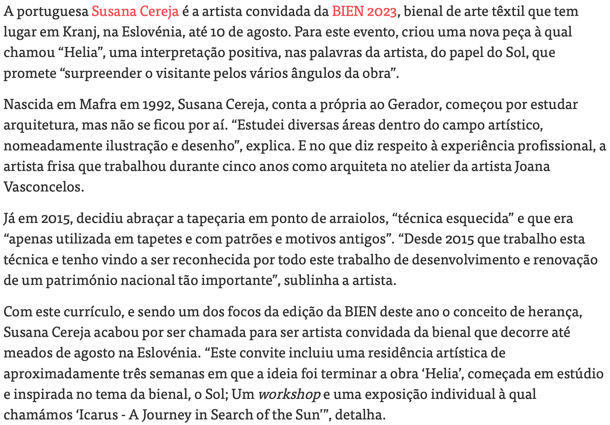 Susana Cereja invited to Slovenia's textile art biennale