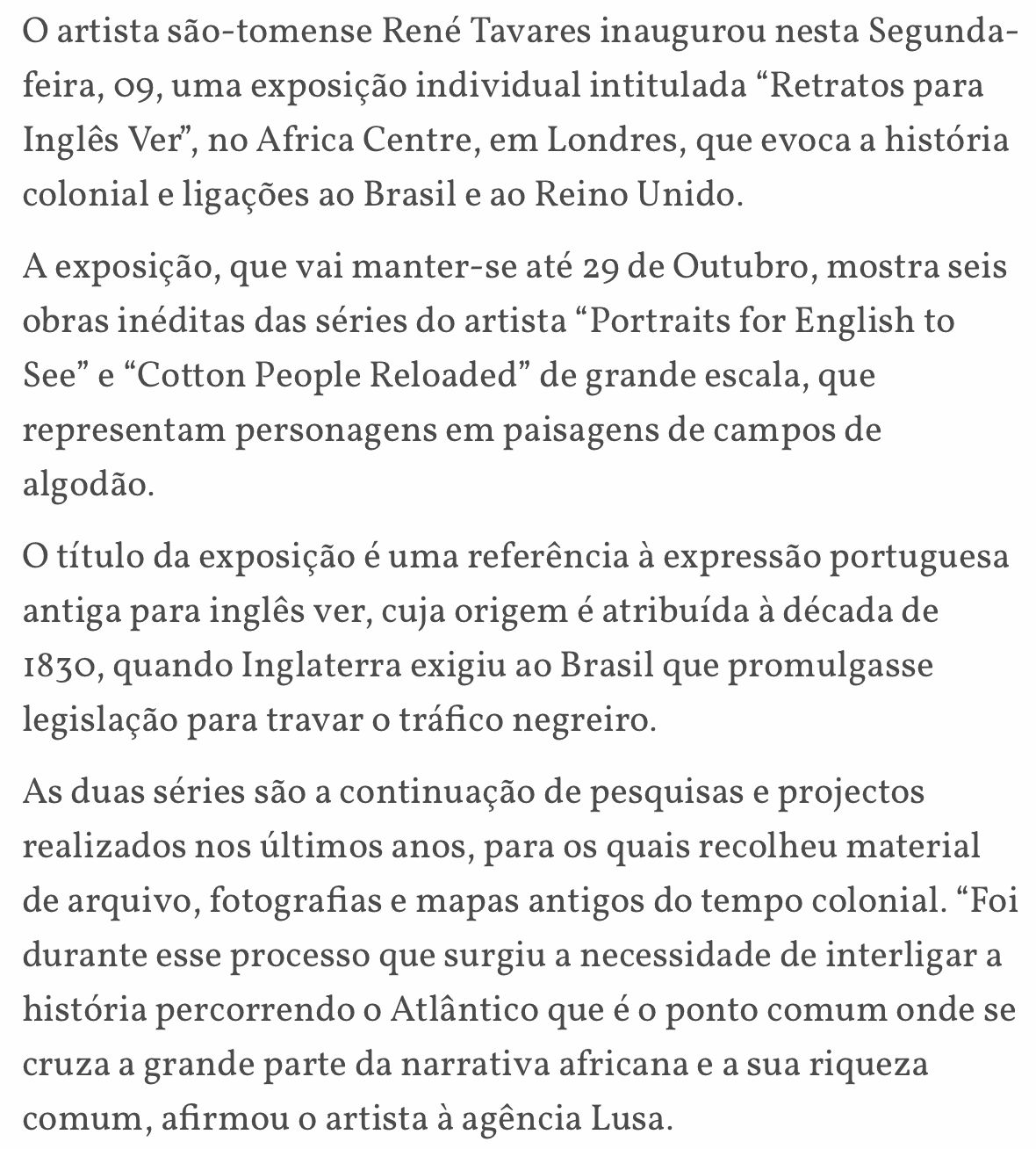 São Toméan artist René Tavares opens solo exhibition in London