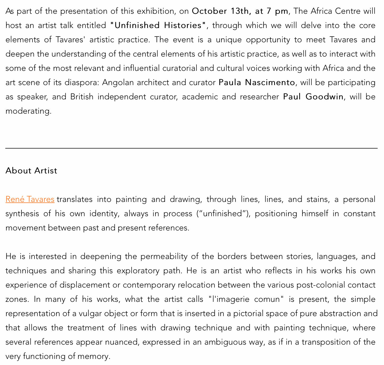 THIS IS NOT A WHITE CUBE partners with The Africa Center to presents René Tavares