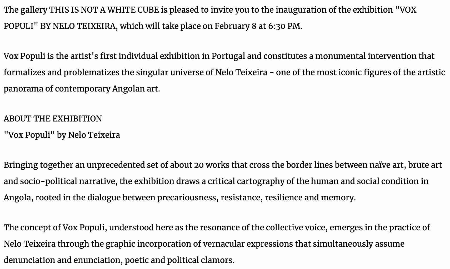 Inauguration of the "VOX POPULI" Exhibition by NELO TEIXEIRA