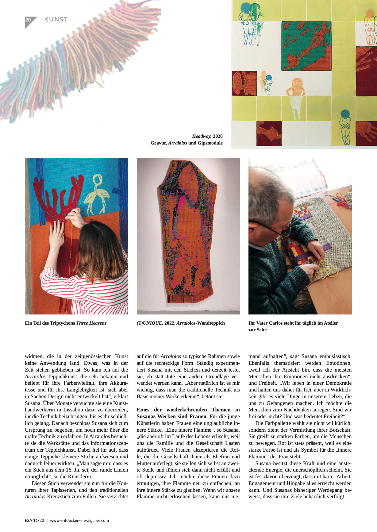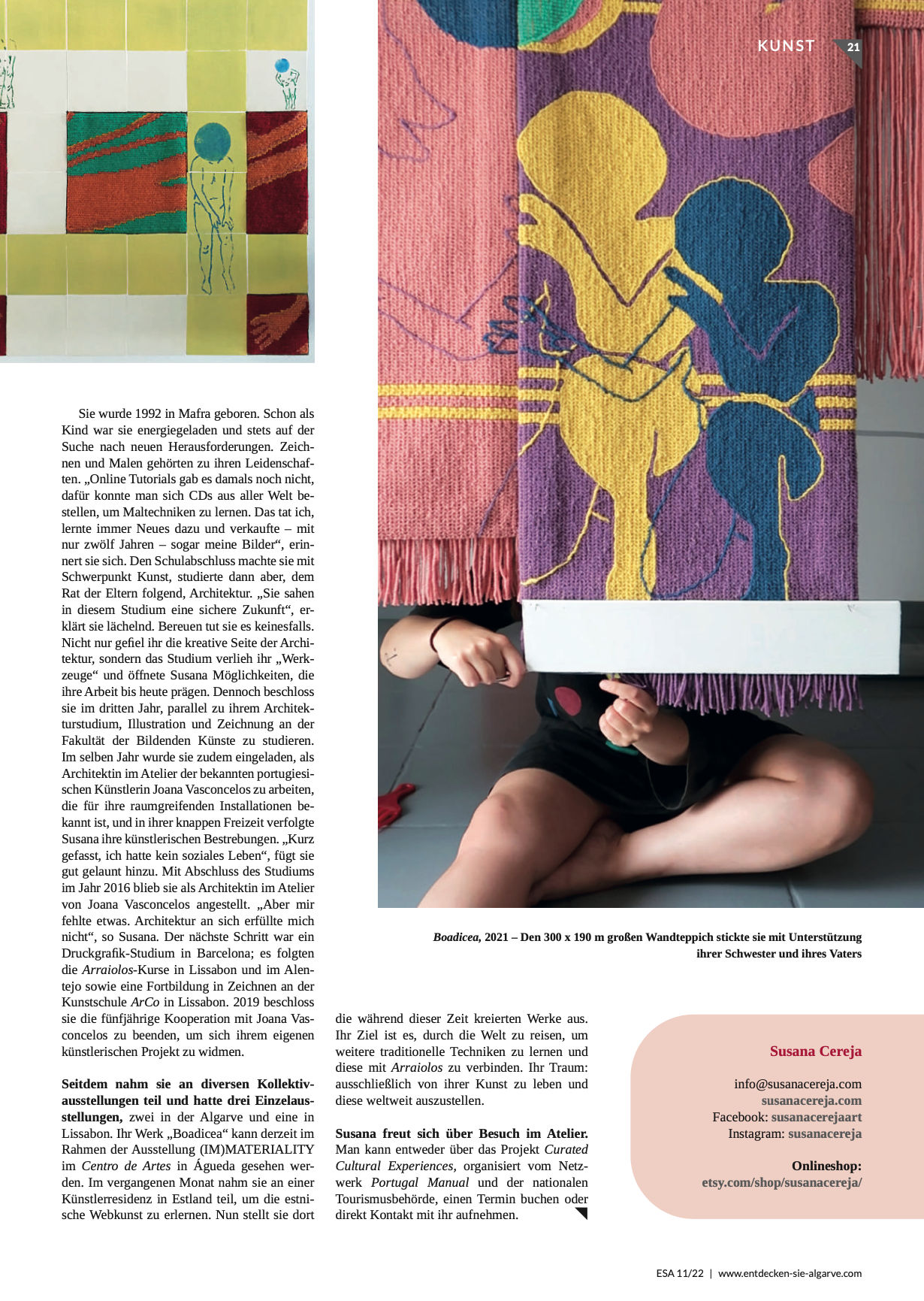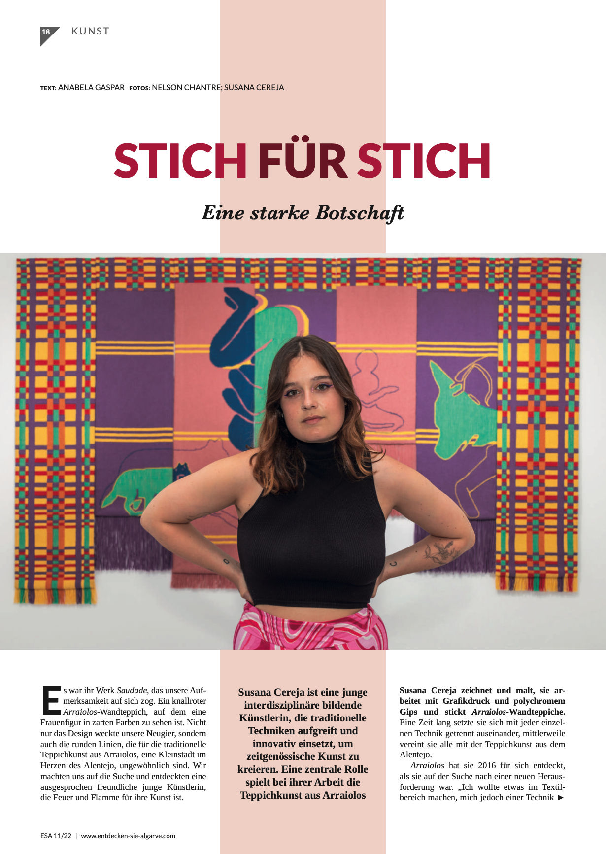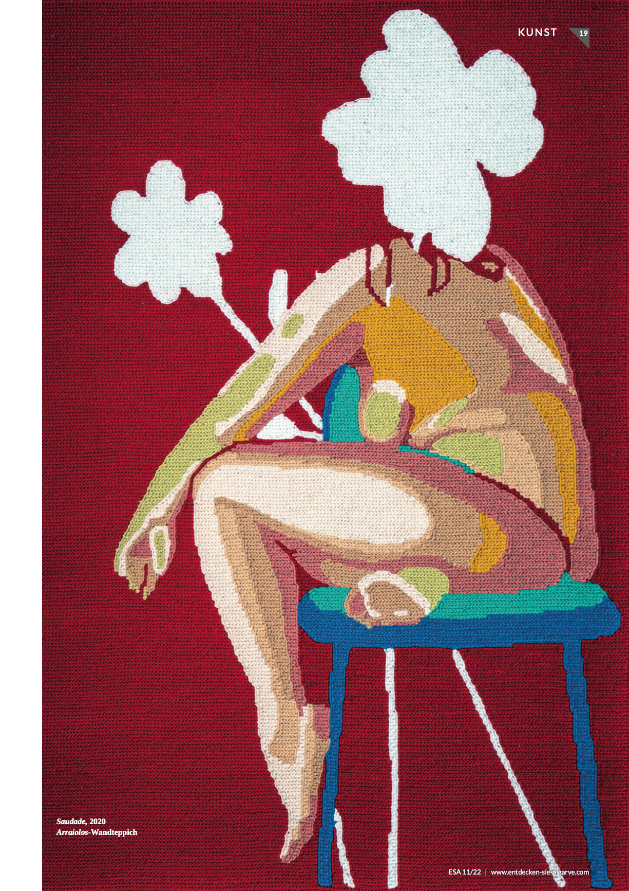 It´s her work Saudade that attracted curiosity, KUNST searched and found an amazing young artist. In this issue, we meet the work and techniques of Susana Cereja and her unusual eye for the traditional carpet art of Arroiolos.